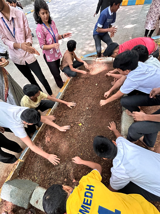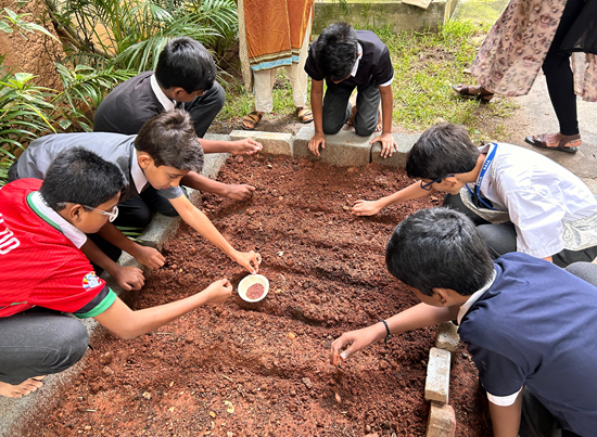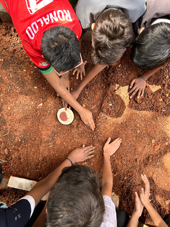 Our school has given an opportunity to practice the process of ploughing of seeds with the "Akshaya Kalpa Foundation". Students got a chance to make the ground, plough the seeds, and water them . Students enjoyed the 3 week session.