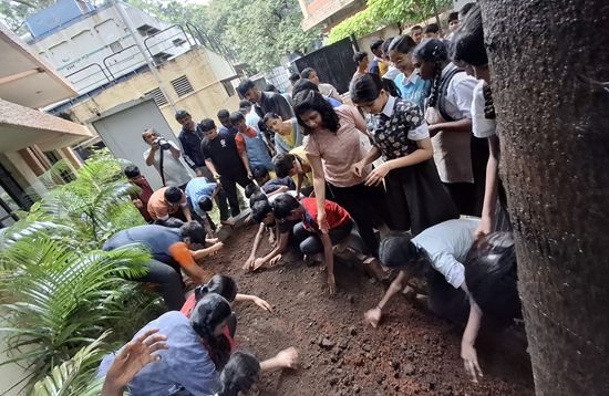 The Planting and watering of Sapling by our honourable secretary of DSI Shri Galiswami and our respected principal Mrs. Varsha Jaideep along with the teachers were also a part of the day's celebration.